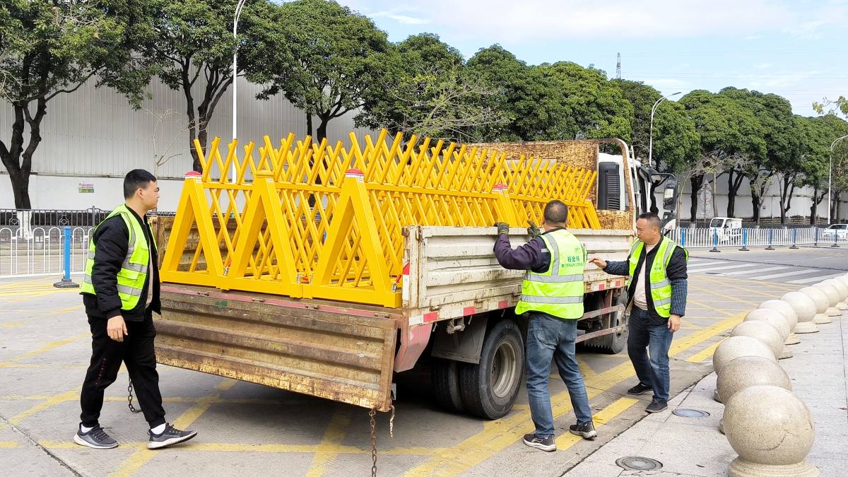隨著車輛緩緩?fù)O?,大家齊心協(xié)力,將一格格堅固的拒馬護(hù)欄小心翼翼地搬運下來與校方或社區(qū)負(fù)責(zé)人進(jìn)行交接,并按照預(yù)先規(guī)劃的位置進(jìn)行安裝。