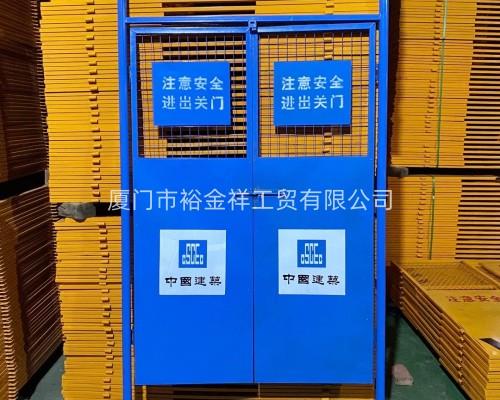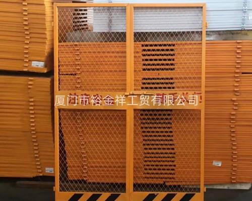 根椐建筑工地外架步距1.8M,間距1.5M,人貨施工電梯轎箱寬1.5M,全國統(tǒng)一標(biāo)準(zhǔn)化規(guī)格為每組2張門,高1.7M,寬1.4M,上下左右留5CM活動間隙。