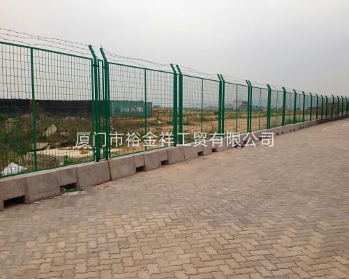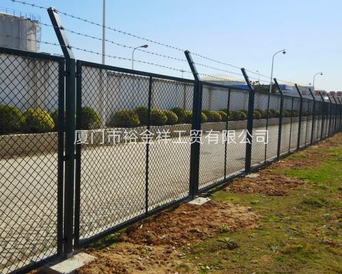 表面處理:浸塑\噴塑\鍍鋅近年來(lái),被廣泛應(yīng)用在機(jī)場(chǎng),軍事基地等高安全場(chǎng)所。注:如果在機(jī)場(chǎng)隔離柵頂部加裝刀片刺絲、刀片刺繩后又很好的增強(qiáng)了安全防護(hù)性能。